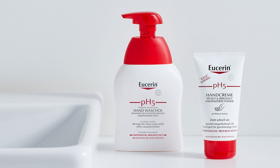 Rendkívül fontos, hogy kezünket rendszeresen megmossuk, hiszen számos szennyeződés, baktérium telepedhet meg rajtuk, melyek befolyásolhatják a bőr természetes védőrétegének működését. Ennek gyakori eredménye az irritáció és szárazság. A 100 éves tapasztalatának köszönhetően az Eucerin már ismeri a megoldást: az Eucerin pH5 termékcsalád elősegíti a bőr természetes védekezőképességét és regenerálódását.