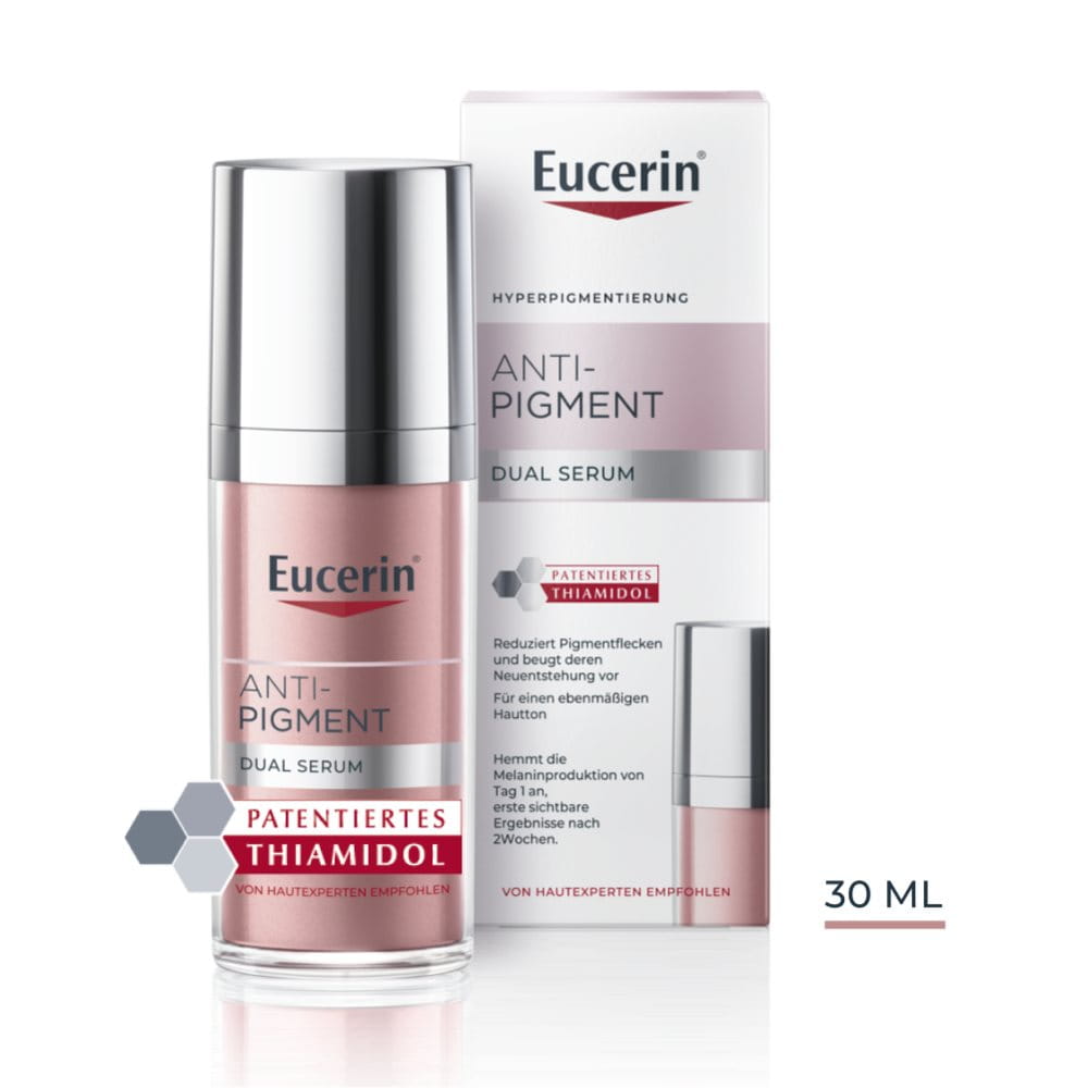 Az Eucerin Anti-Pigment Dual szérum koncentrált hialuronsavat tartalmaz, mely javítja a bőr hidratáltságát. Arra fejlesztették ki, hogy fokozza pigmentcsökkentő arckrémeink hatását. A legjobb eredmény eléréséhez javasoljuk, hogy a szérumot használja az Eucerin Anti-Pigment termékcsaládjának más tagjaival együtt.