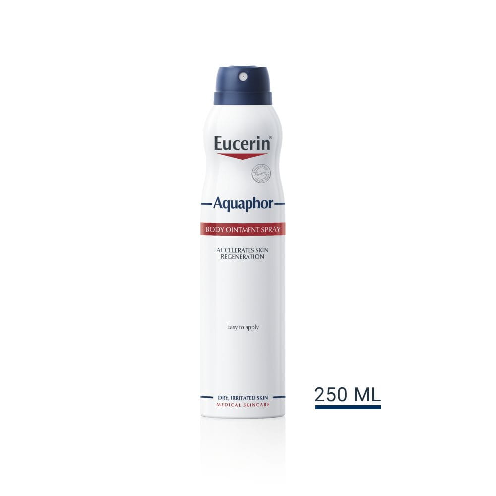 A nagyobb testrészek egyszerű és azonnali ápolása érdekében alkottuk meg az Eucerin Aquaphor regeneráló spray-t. Az innovatív spray-adagolóval könnyedén elérheti bármelyik testrészét. A fúvóka folyamatos, egyenletes adagolást biztosít, sőt fejjel lefelé is használható, így 360°-os hozzáférést biztosít a száraz bőrhöz a test bármely pontján. A bőr felszínén védőréteget képez a bőr regenerálódása, megnyugtatása és az azonnali hűsítése érdekében. A vízmentes kenőcs klinikailag bizonyítottan regenerálja a száraz, irritált bőrt.