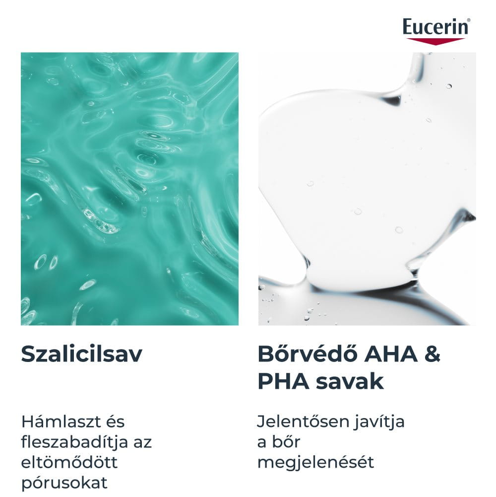 - DERMO SAVAK (AHA & PHA): A hidroxi savak erőteljes összetevők, amelyek gyengéd hámlasztás révén jelentősen javíthatják a bőr megjelenését. Az Eucerinnél mind az AHA (alfa-hidroxi sav), mind a PHA (poli-hidroxi sav) előnyeit kihasználjuk a simább, egyenletesebb bőr érdekében.