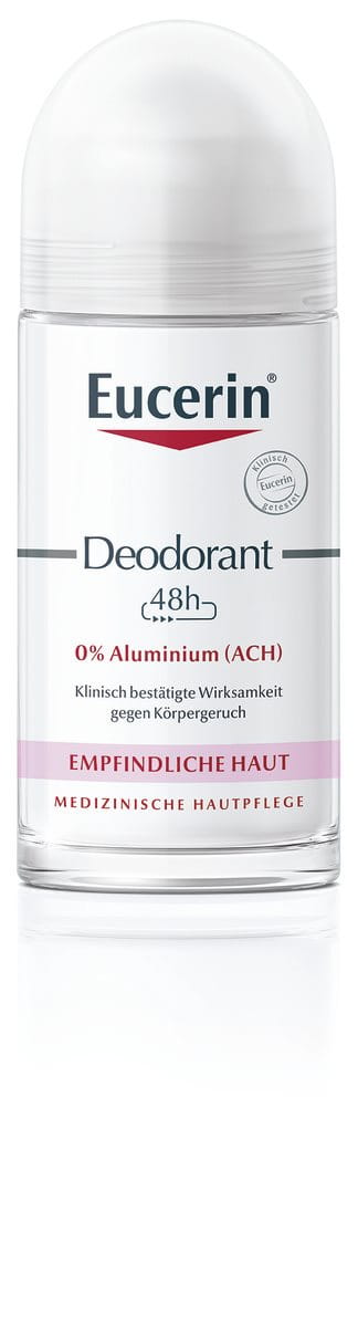 Az érzékeny bőrre kifejlesztett Eucerin Alumínium-mentes golyós dezodor közvetlenül a borotválás vagy a szőrszálak eltávolítása után használható, és bizonyítottan legalább 24 órás védelmet nyújt a testszag ellen.