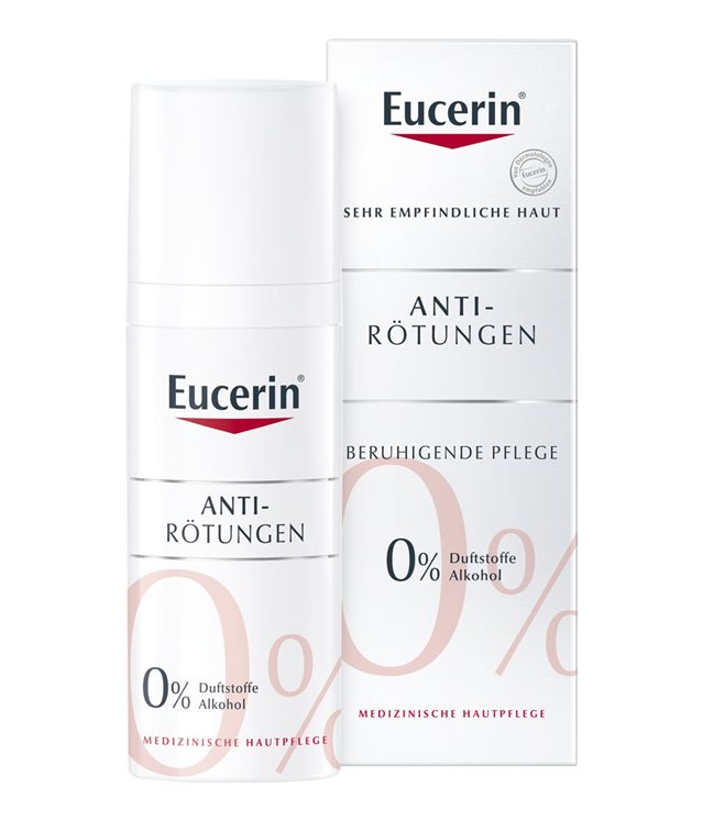 Az Eucerin® Anti-Redness Bőrpír elleni arcápoló kifejezetten a kipirosodásra hajlamos, hiperérzékeny és rosaceára / hajszálerek elpattanására (couperosa) hajlamos bőrre lett kifejlesztve. Arctisztítás után napi kétszer alkalmazva az arc, nyak és dekoltázs területére azonnali és tartós komfortérzetet eredményez, hatékonyan enyhíti a bőrpírt, ugyanakkor védi a bőrt és csökkenti a bőrirritációt.