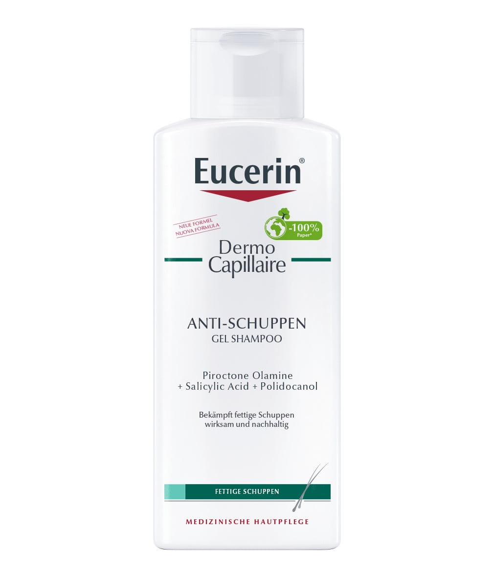 Az Eucerin DermoCapillaire Korpásodás elleni sampon zsíros korpára termék, mely nem tartalmaz színezőanyagokat, parabéneket és szilikont, hatékonyan csökkenti a korpásodást és nyugtatja a fejbőrt. Az összetevők különleges keverékének köszönhetően rendkívül hatékony zsíros korpa és seborrheás dermatitis ellen. A sampon hatékonysága klinikailag bizonyított, és az eredmények már az első használat után jelentkeznek. A formula speciális kondicionáló összetevőt is tartalmaz, mely a hajat egészséges megjelenésűvé és ragyogóvá teszi.